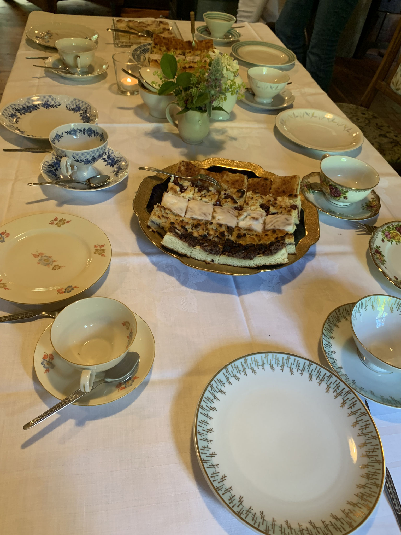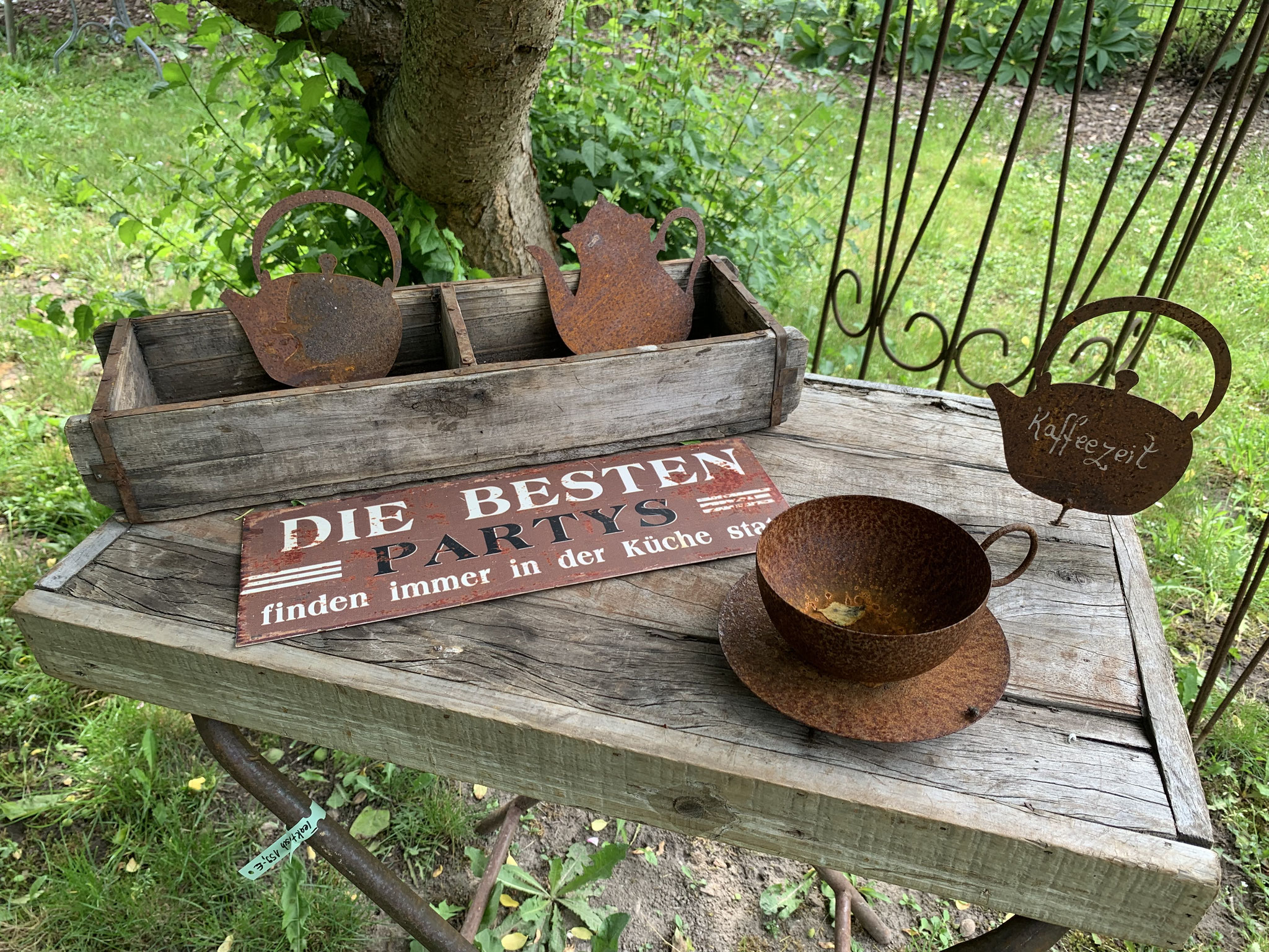 In zwei Gruppen trafen wir uns in Susannes liebevoll gestaltetem Garten: Die Nachmittagsgruppe wurde mit Kaffee, Tee und selbstgebackenem Kuchen verwöhnt, die Abendgruppe genoss Baguette und feine Dips.