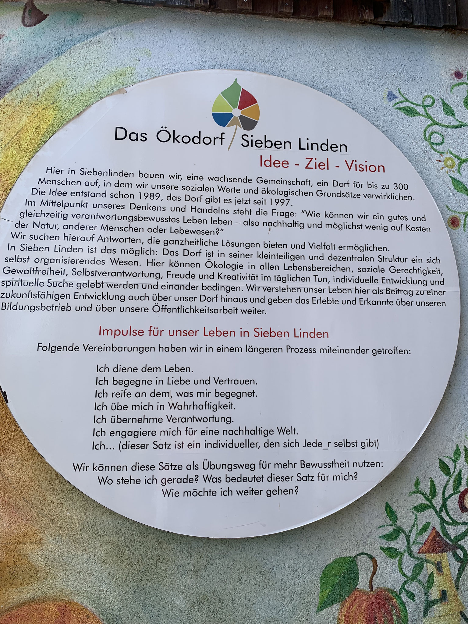 Das Ökodorf Sieben Linden in Beetzendorf. Ziel der Einwohner*innen ist es, durch einen gemeinschaftlich nachhaltigen Lebensstil einen geringen ökologischen Fußabdruck mit hoher Lebensqualität zu verbinden. Das im Rahmen einer Führung vermittelte Konzept des Dorfes und die anschaulichen Erklärungen zu den in Permakultur angelegten Gemüsegärten (Selbstversorgung des Dorfes) waren überaus interessant und wurden beim gemeinsamen Mittagessen (vegan und super lecker!) von den Landfrauen als äußerst positiv wahrgenommen. Aber sicherlich ist diese Lebensform auch nicht für jeden geeignet.